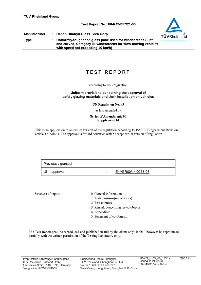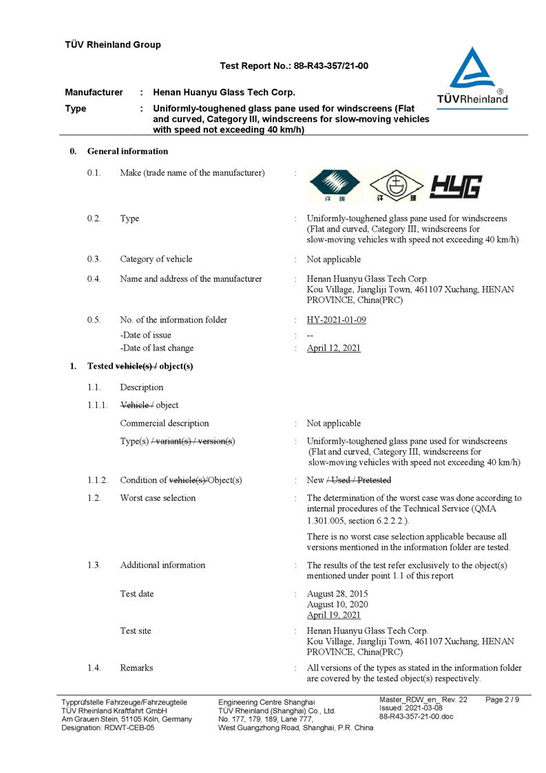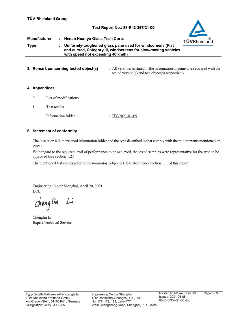 河南環(huán)宇玻璃科技股份有限公司年產(chǎn) 5 萬平方米驗(yàn)收報告公示