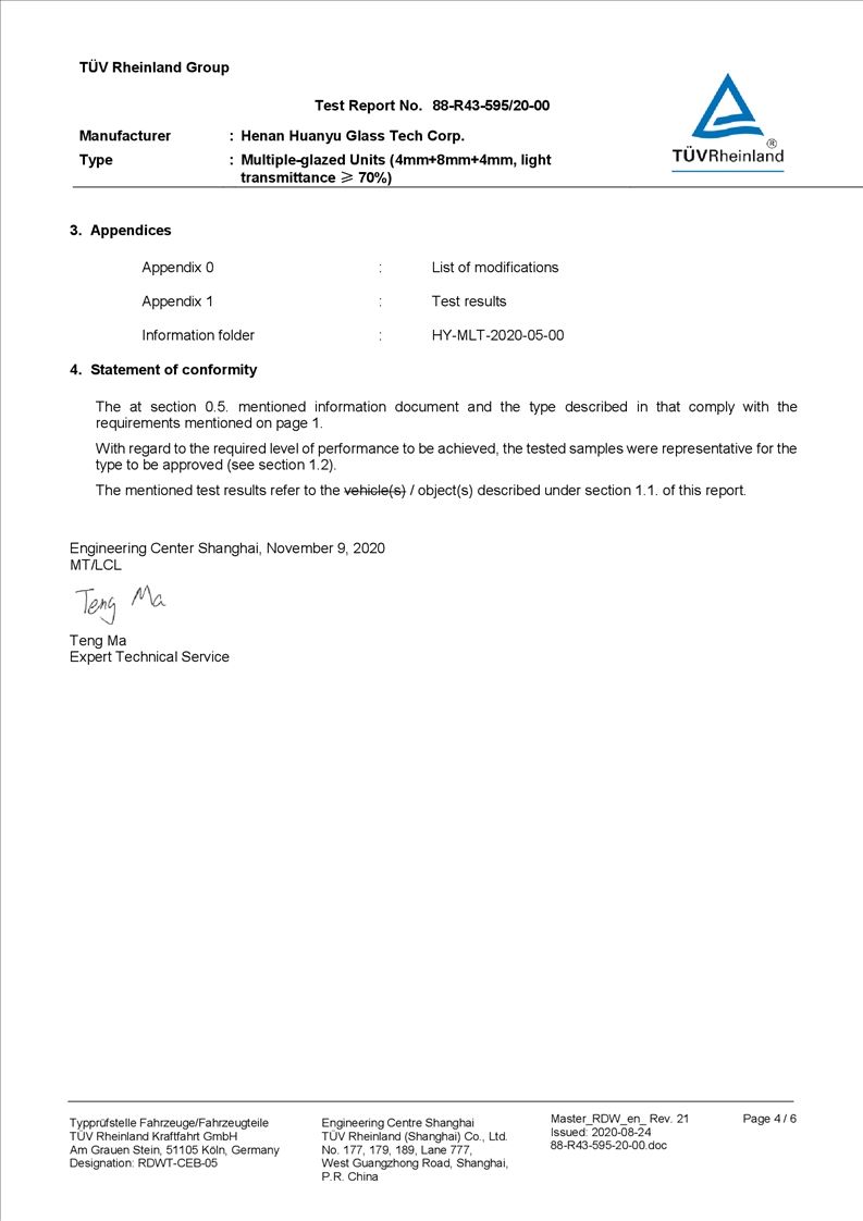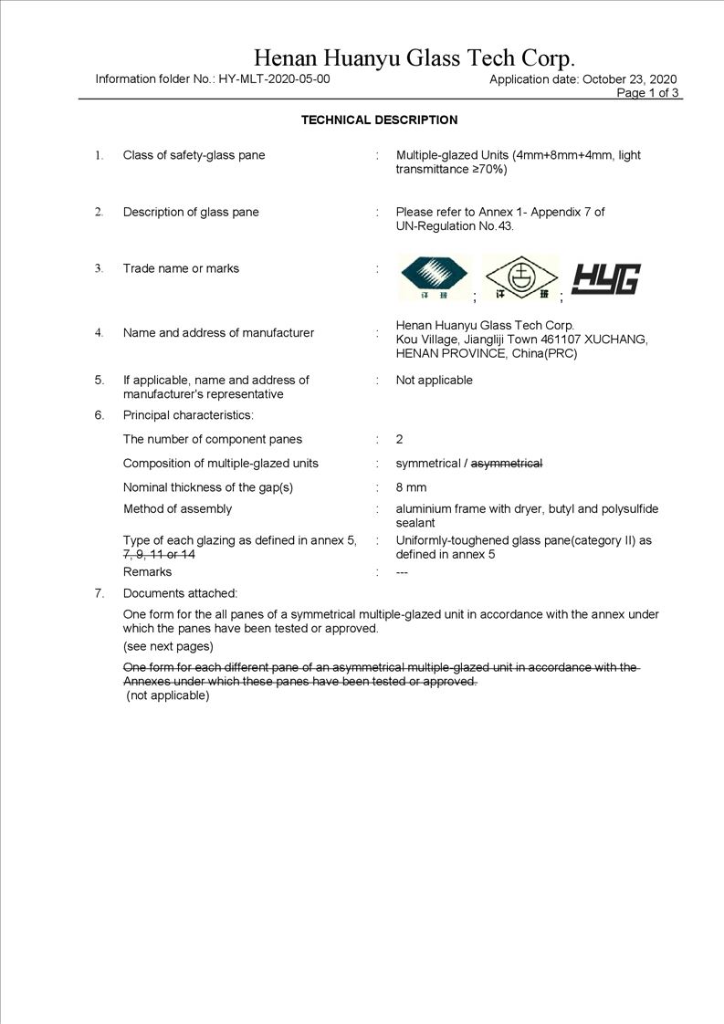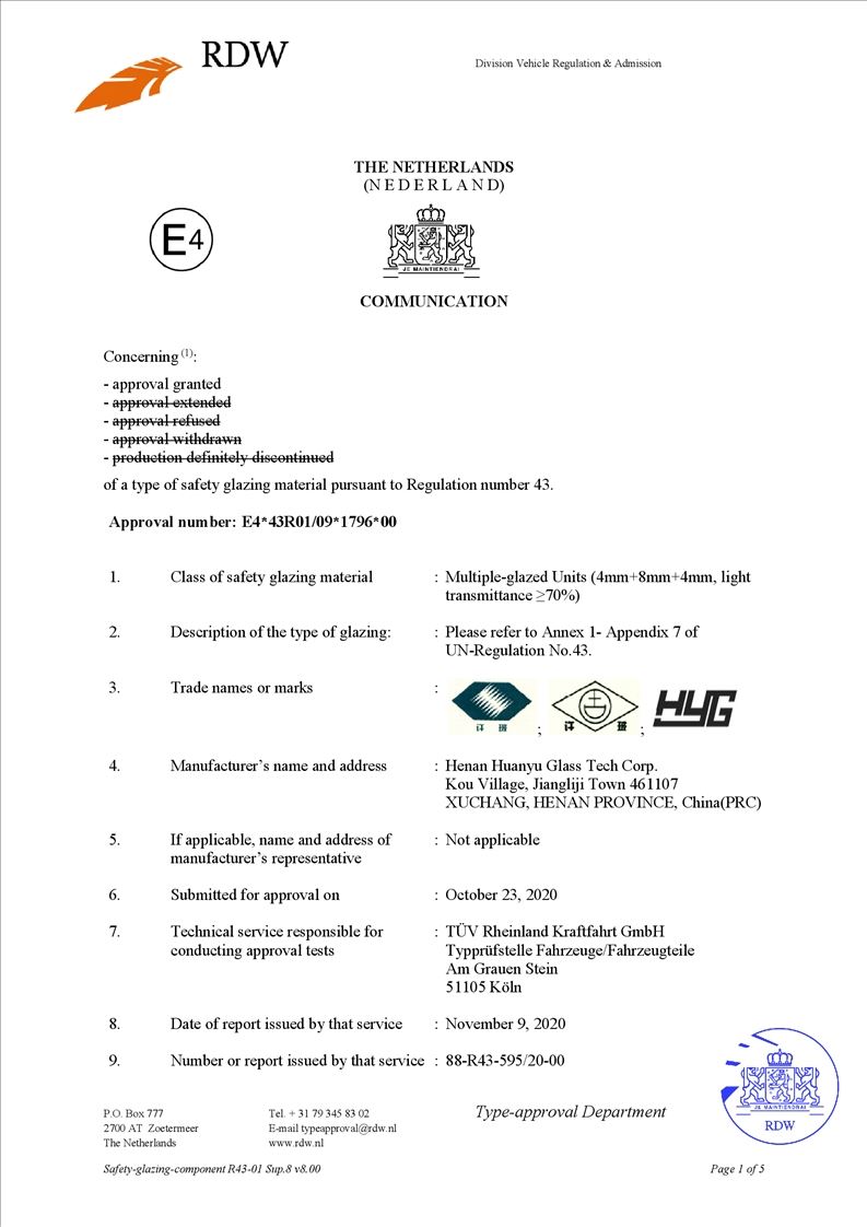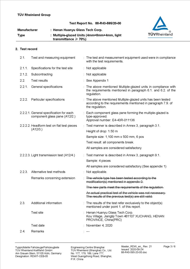 河南環(huán)宇玻璃科技股份有限公司年產(chǎn) 5 萬平方米驗收報告公示